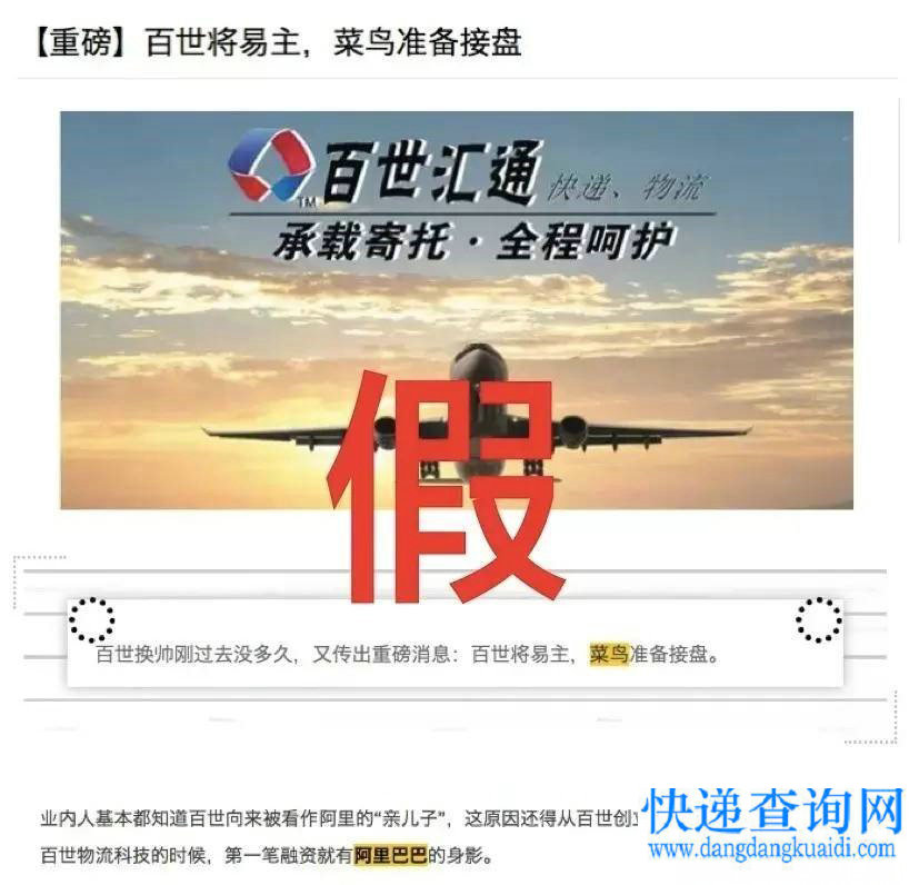 假消息!百世快递将易主,菜鸟将接盘