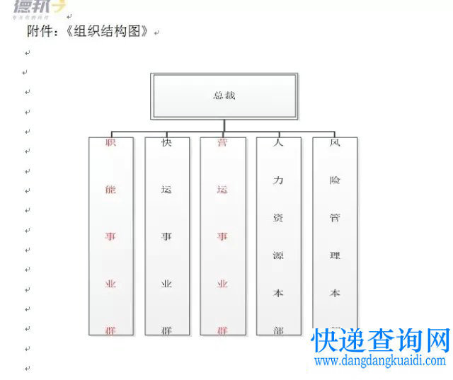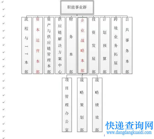2017德邦0001号文件公布了德邦的最新组织架构,总裁直属5大事业部,职能事业群是核心....