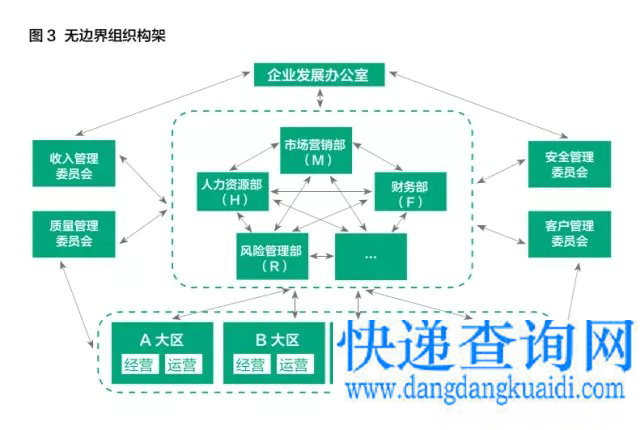 有了“企发办”靠实权建立的“网状目标结构”和“项目协作机制”,德邦正式开始了过渡为无边界组织的进程。从横向边界上看,任何部门都可以随时发起协作,资源之间可以随时互联,横向边界造就的部门墙已经被打破。从纵向边界上看,基层既扛指标,又参与决策,呼唤资源补给,责权对等,而完不成指标则变成自己的问题,无处推诿。于是,组织的纵向边界被打破了。