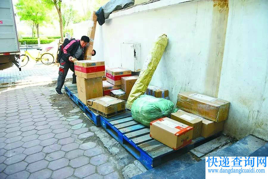 顺丰台儿庄路网点位于市区,又紧邻海河,场地有限,所有快件都会集中在网点门口的木板托盘上进行清点装车。▼