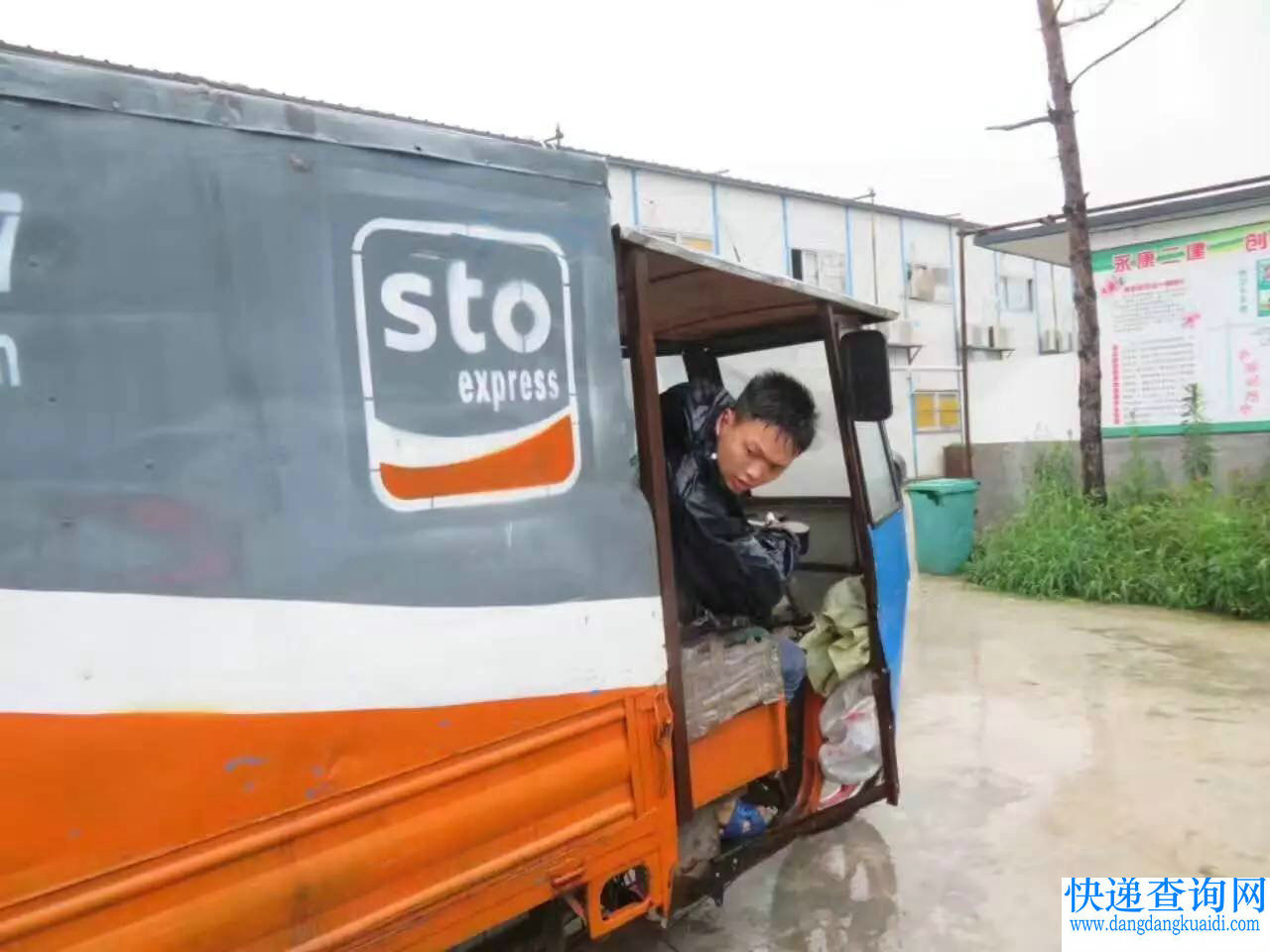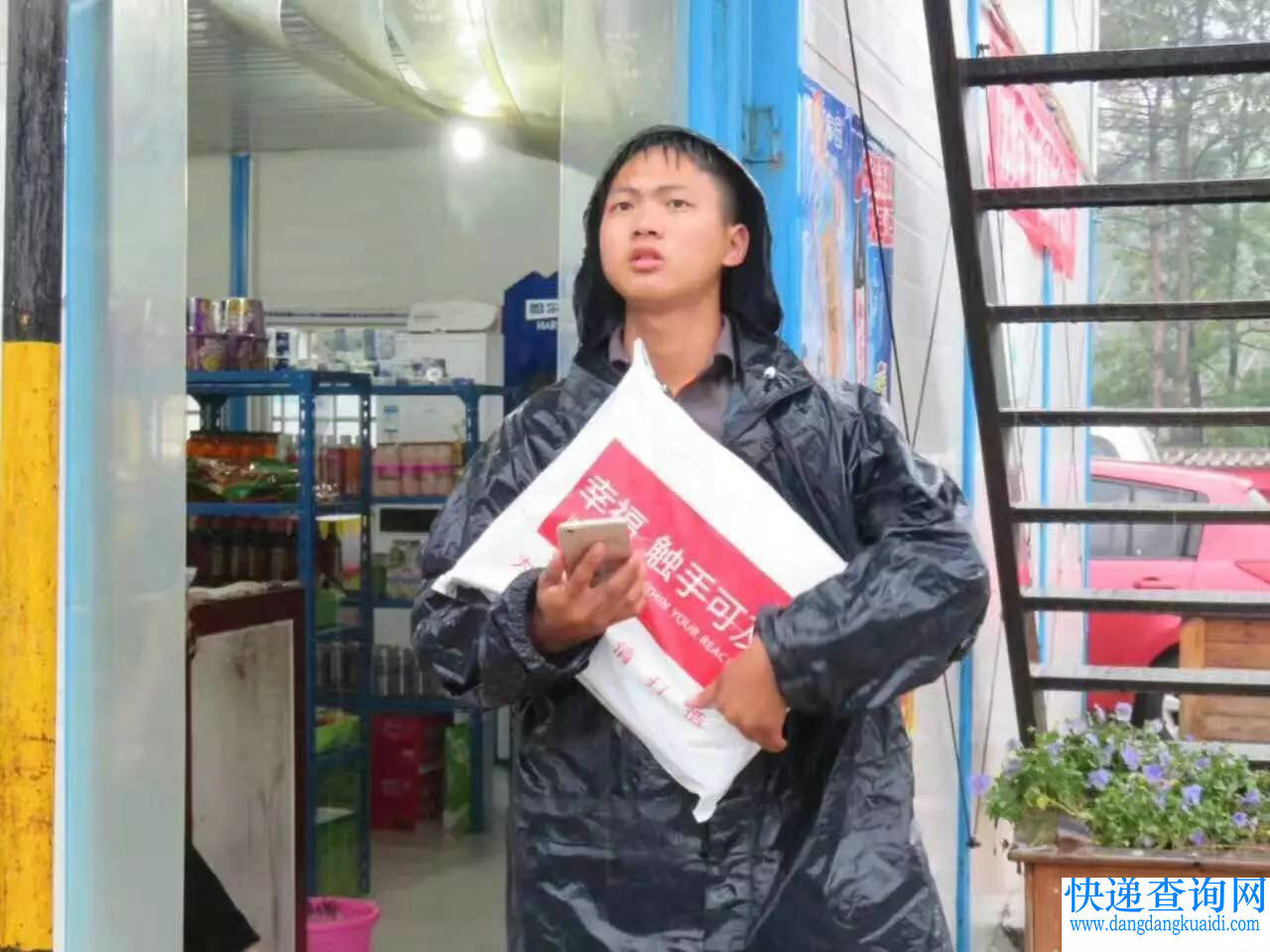 浙江永康申通快递小哥吴文康冒雨派件(顾丽娟供图)