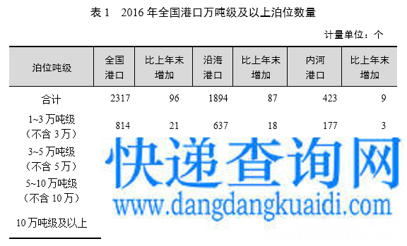 年末全国港口拥有万吨级及以上泊位2317个,比上年增加96个。其中,沿海港口万吨级及以上泊位1894个,增加87个;内河港口万吨级及以上泊位423个,增加9个。