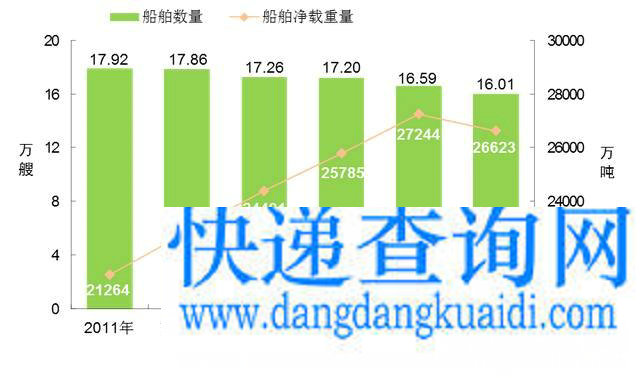 年末全国拥有水上运输船舶16.01万艘,比上年减少3.5%;净载重量26622.71万吨,减少2.3%;载客量100.21万客位,减少1.5%;集装箱箱位191.04万标准箱,减少26.6%。