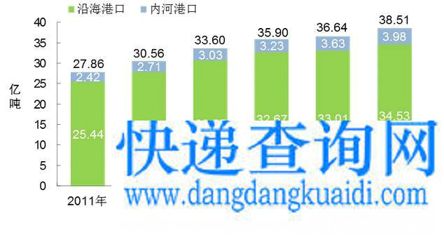 全国港口完成外贸货物吞吐量38.51亿吨,比上年增长5.1%。其中,沿海港口完成34.53亿吨,增长4.6%;内河港口完成3.98亿吨,增长9.7%。