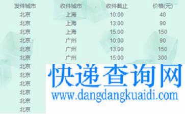 公司每天有1000、1300和1500三个收件截止时间点,下单寄件,一小时内上门取件。目前,已开通当日达的城市名单及价格表(部分)如下