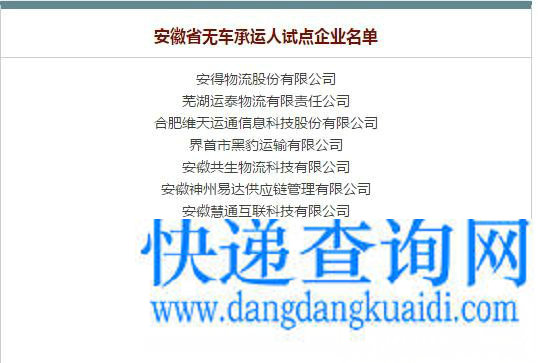 近日,安徽省无车承运人试点企业名单出炉,安得物流、共生物流等13家企业入选。