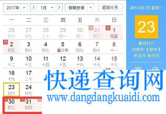 2017春节快递停运时间表