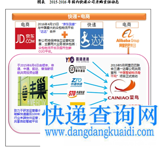 中投顾问在《2017-2021年中国快递业投资分析及前景预测报告》中指出,2015-2016年,申通收购天天快递,京东和达达合并,阿里战略投资圆通速递,顺丰联合数家快递公司共同投资5亿元成立“丰巢科技”,圆通和汇通加入菜鸟驿站,“通达系”快递企业各自抱团的态势愈演愈烈。快递企业与电商平台深化合作,加强线上线下衔接的紧密性,市场竞争格局生变,抱团取暖已成为趋势。
