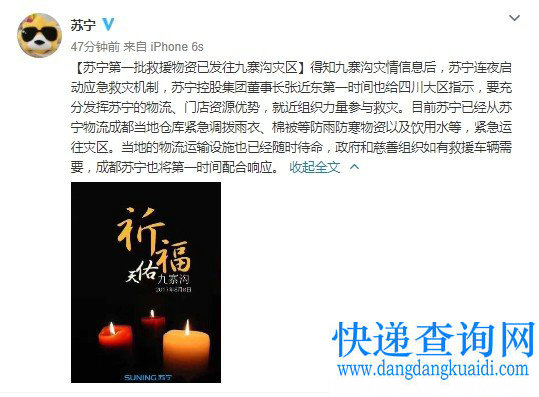 苏宁首批物资已发,第一时间响应四川