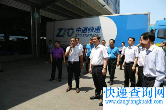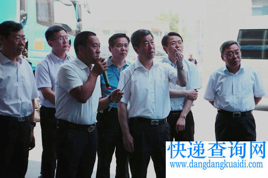 河南省省长陈润儿(右三)听取中通快递河南公司总经理张要仁(左三)的介绍