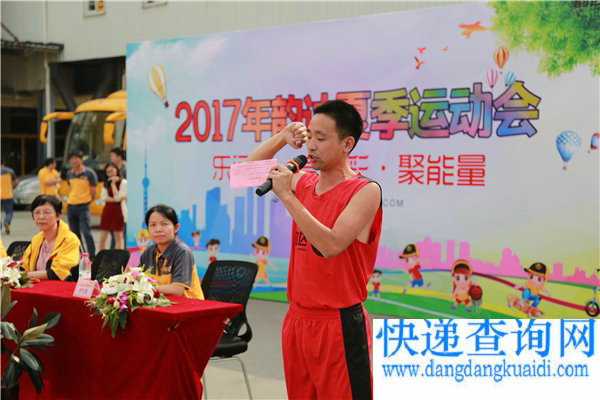 韵达速递人力行政中心副总经理致开幕词,他代表公司,对本届运动会的举行表示热烈的祝贺,向筹备此次运动会付出辛勤和努力的全体运动员、裁判员和工作人员表示衷心的感谢。他说,每年的运动会是我们全体韵达人的节日,既是检验韵达企业文化建设成果的一个窗口,也是展现我们韵达人良好精神风貌的一个重要契机。他希望通过这次运动会,把大家团结协作、奋勇争先的良好竞技状态融入到今后的工作生活中去,在各自的工作岗位上做出不平凡的业绩。