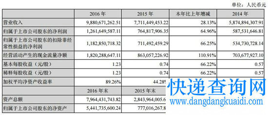 4月17日晚间,申通快递(002468)发布2016年度财报。报告显示,2016年,申通实现营收98.8亿,同比增长28.1%;利润总额达16.9亿,同比增长64.2%。
