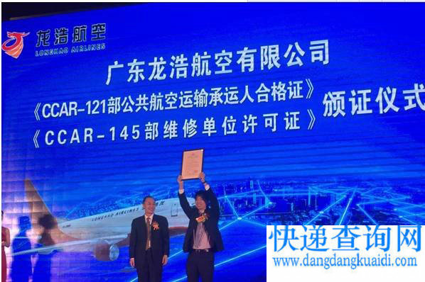 首家以广州为主运营基地的货运航空公司、第三家以广州为主运营基地的航空公司诞生。3月28日上午,广东龙浩航空有限公司举行颁证仪式。民航中南管理局为该公司颁发CCAR-121部公共航空运输承运人合格证和CCAR-145部维修单位许可证。3月29日清晨,该公司一架波音737飞机将满载货物从江苏南通飞抵广州白云机场,实现首航。