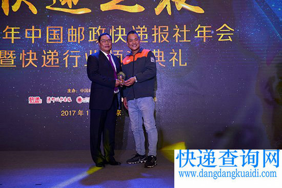 在颁奖典礼上,值得一提的是,来自申通快递北京凤凰城公司的快递员窦立国作为颁奖人,亲自为陈德军董事长颁奖。在颁奖时他表示,因为有申通这样的平台,才铸就了今天的窦逗,一步步实现自己的梦想!申通大家长陈德军董事长表示,2017年希望快递人能够得到更多的认可和尊重,希望并鼓励员工在申通可以实现更多的梦想!