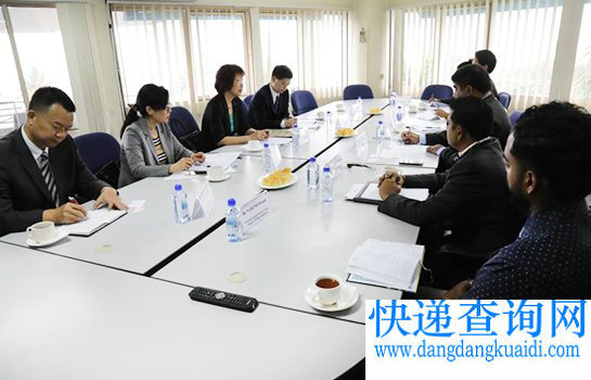 图为国家邮政局代表团与斐济公共企业部会谈现场。