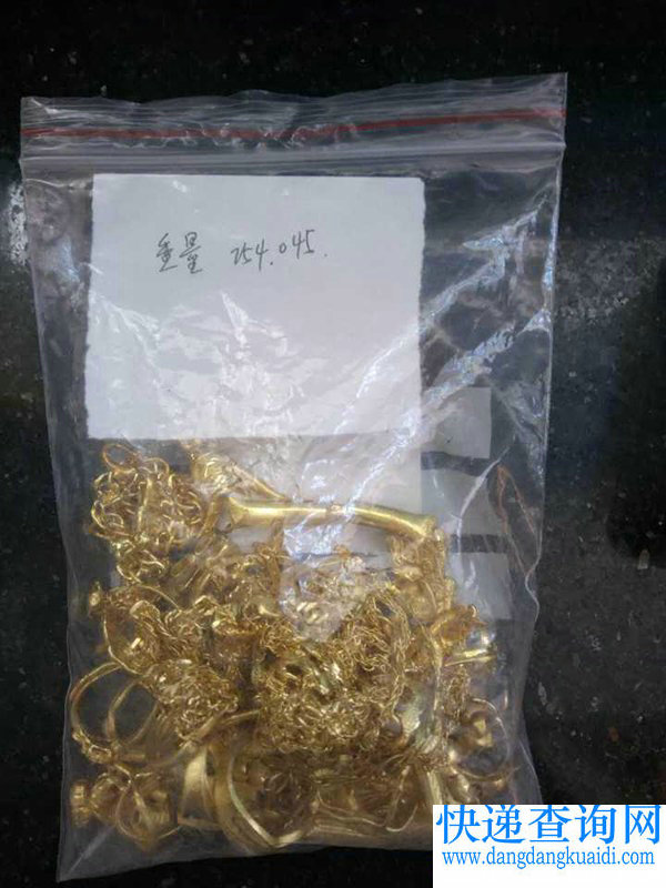 自己没买,问了家人也没买过,黄金饰品是谁的呢?倪新国通过比对,发现两个快递的单号一模一样,黄金饰品塑料袋包装上印有“绍兴某金银饰品有限公司”,还有张写着“254余克”的小纸条。