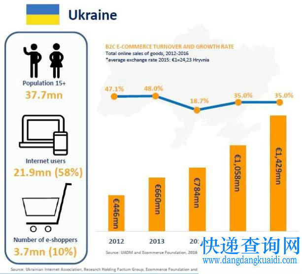 乌克兰是农业和重工业国家,轻工业则欠发达,鞋业、纺织业、服装成衣、电子产品等很多都依赖进口。加之乌克兰本国零售业发展受阻,乌克兰人想要买日用消费品,一般习惯网购,海淘之风盛行。根据ECOMMERCEEUROPE(欧洲电子商务协会)的研究数据,乌克兰2015年在线零售相比2014年增长了35%,增长率在欧洲名列第一。