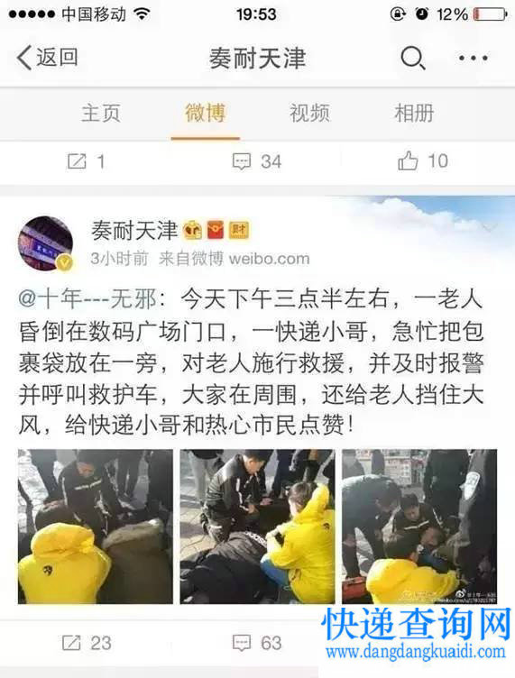 2月9号晚间,微博大V奏耐天津转发了一条好人好事,顿时收到一片点赞,根据这条线索,我们联系到了照片中的顺丰小哥刘蓬。