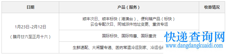 2017年春节期间顺丰速运服务公告